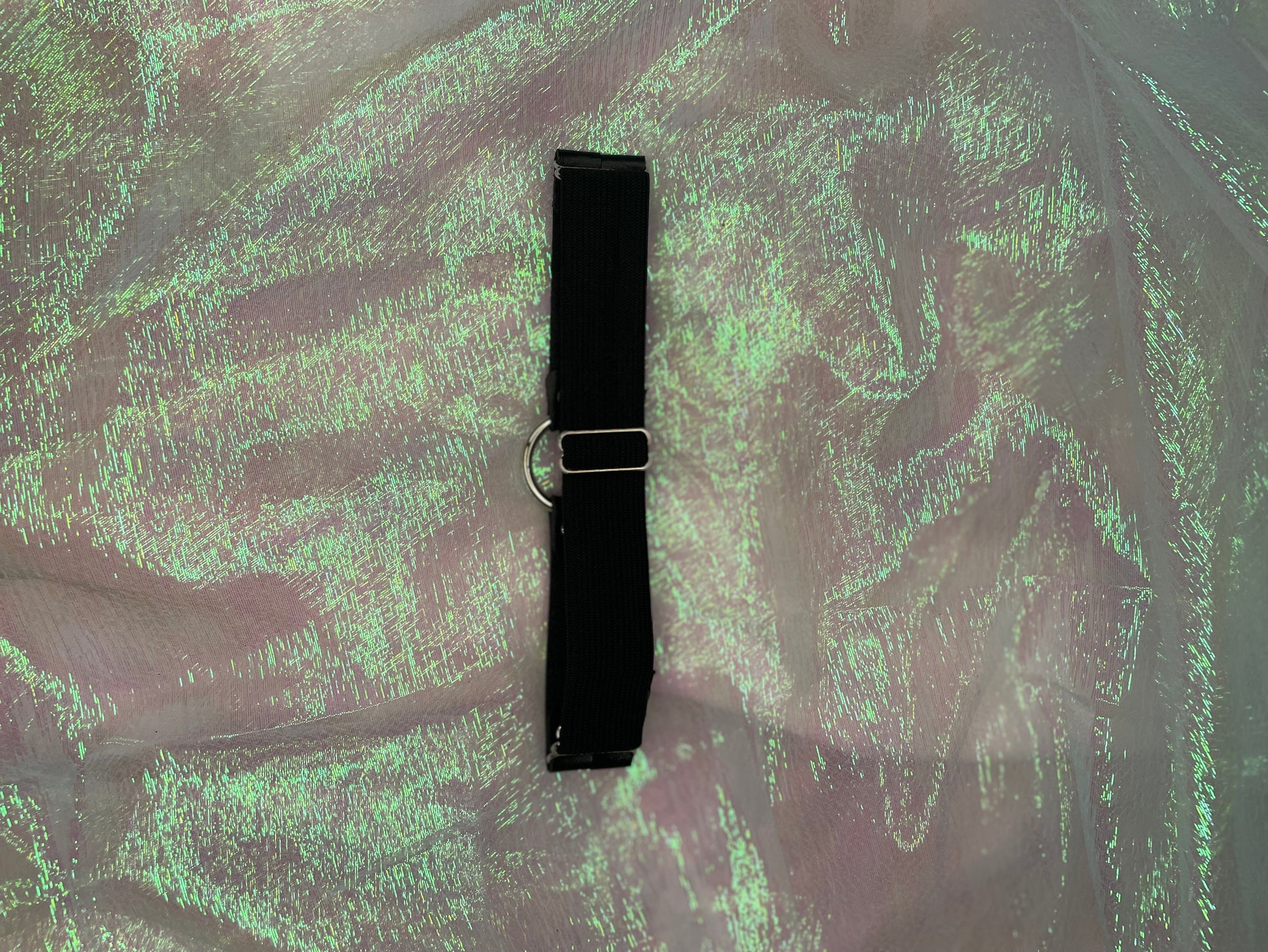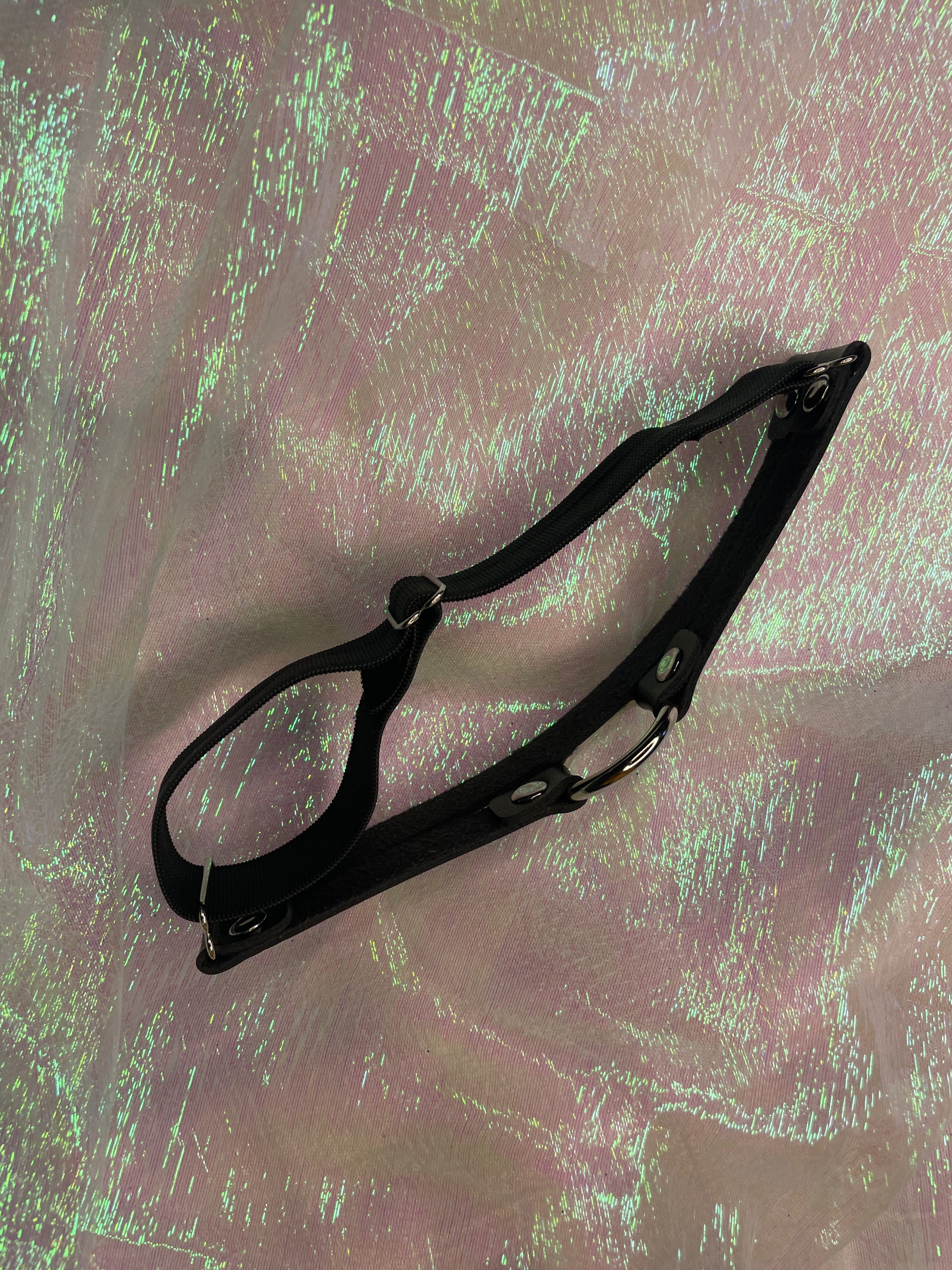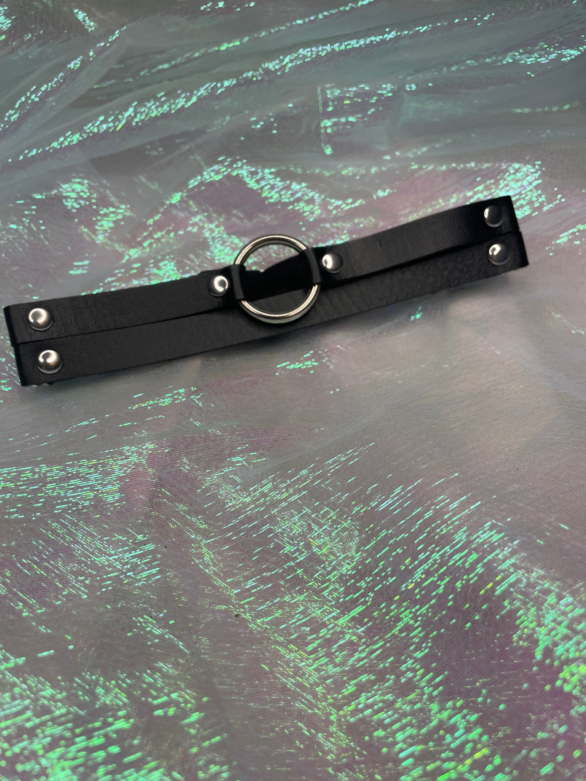 Black garter made with vegan leather. Stretchable and adjustable. ONE SIZE